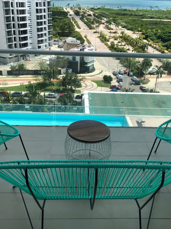 Located on a trendy zone in Cancun Downtown, just on top of Malecon Americas Mall, just one block away from the hotel zone, with spectacular views from the Caribbean Sea and the Nichupte Lagoon.